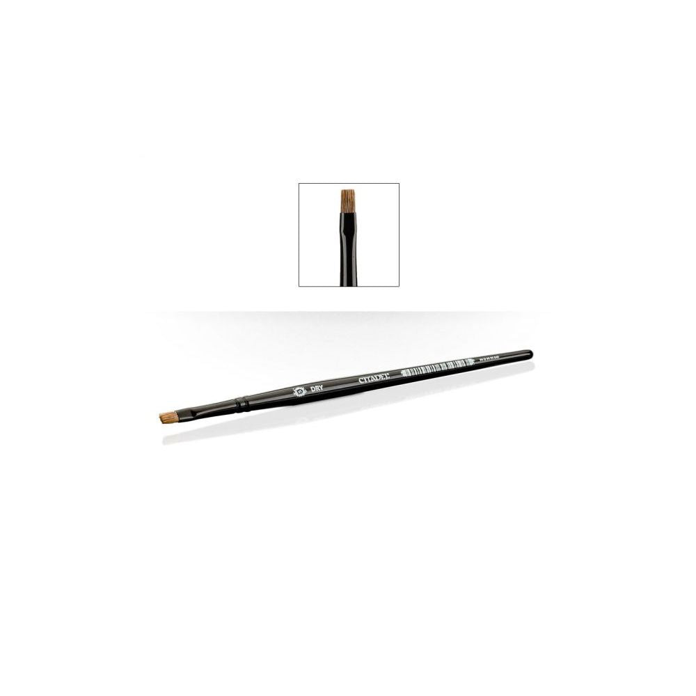 Ce petit pinceau (S Dry) est fait d'un mélange de fins poils de bœuf et de poils synthétiques pour obtenir un bon compromis entre raideur et longévité. La forme aplatie permet de traiter les reliefs avec constance, l'idéal pour le brossage à sec!