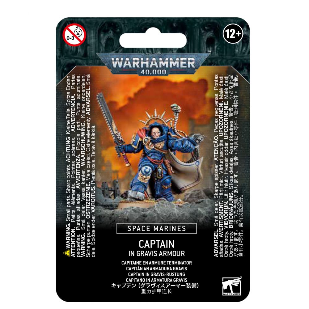Les Capitaines sont des leaders solides des Space Marines; chacun d'eux est un tacticien expert et un guerrier habile, doté d'un éventail d'armes et équipements. Vêtu d'une armure lourde modèle Gravis, un Capitaine peut avancer sans peur au milieu des fusillades les plus sauvages. Porter une armure Gravis est le signe de la plus grande détermination à écraser l'ennemi, même si celui-ci s'est profondément retranché.